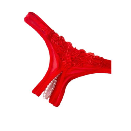 Özel Bölgesi Açık İncili Fantazi Külot Kırmızı